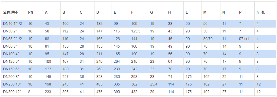 法蘭標(biāo)準(zhǔn):從DN40至DN300