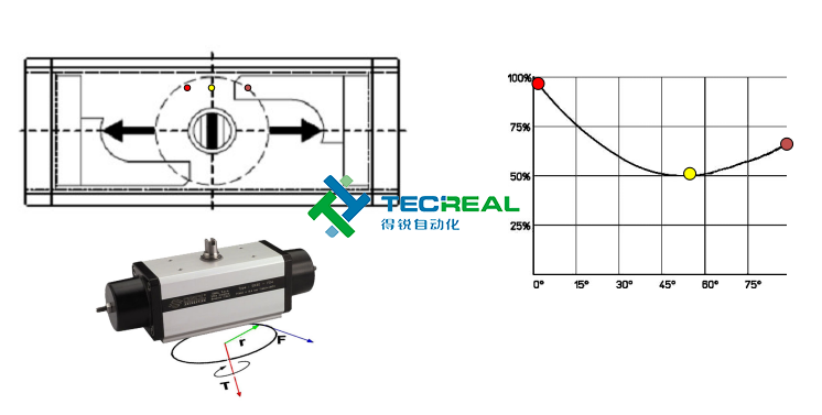 綜上所述,OMAL的撥叉式氣動執(zhí)行器在輸出扭矩上是更為適合球閥和蝶閥啟閉,因為其結構的不同,這也就導致了他們兩者在輸出扭矩上的不同。