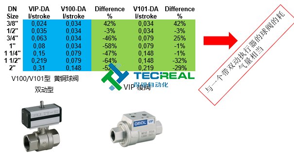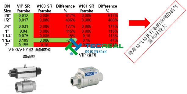 再看看VIP梭閥在耗氣量上與V101氣動(dòng)球閥相比有何差距。從測(cè)試的結(jié)果上來看,梭閥在耗氣量上與一個(gè)帶雙動(dòng)執(zhí)行器的球閥耗氣量相當(dāng)。