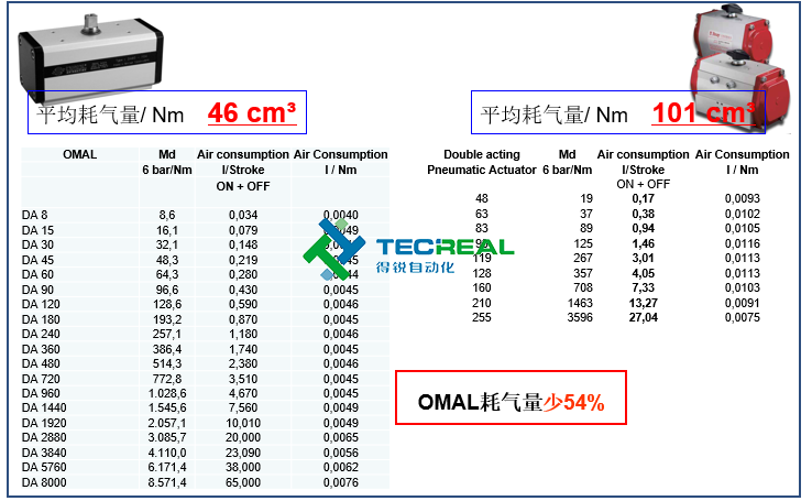 OMAL執(zhí)行器與Bray執(zhí)行器在耗氣量和重量上的對(duì)比