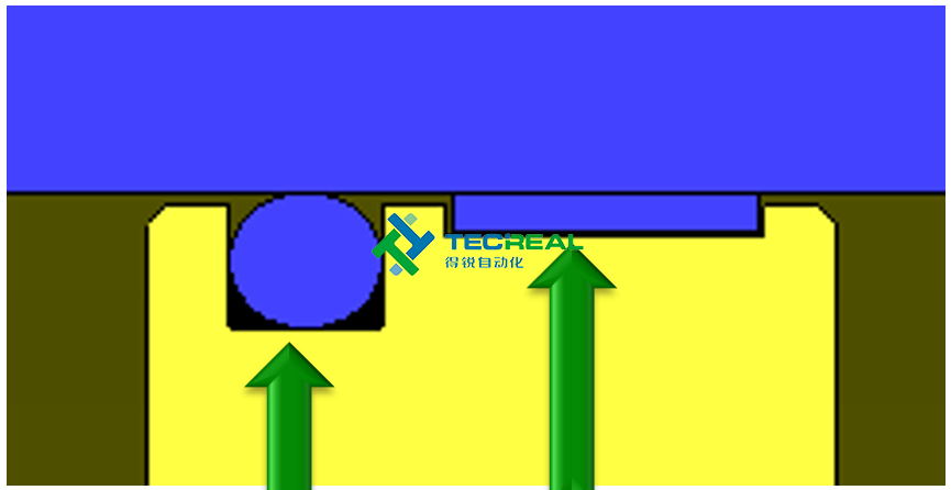 3.導(dǎo)桿(淺藍色)材質(zhì)為鋼(42Cr Mo4) 能夠承受高的側(cè)向力,確保足夠?qū)钊麠U的承受力。此外,導(dǎo)桿表面鍍鉻,以確保最大程度的防腐蝕性,減少與滑塊相互運動的摩擦阻力。