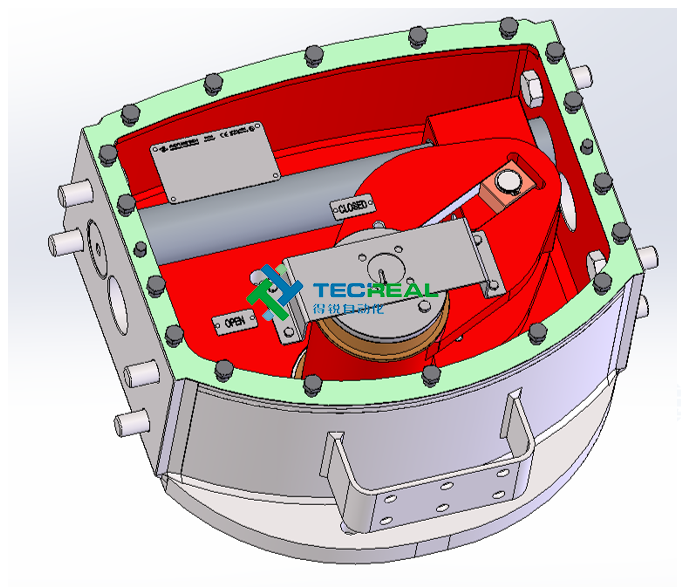 6.缸體內(nèi)表面及撥叉(紅色部分)具有防腐蝕作用。中央機構(gòu)的防護等級為IP67,中央機構(gòu)的上蓋允許在執(zhí)行器不從閥門處拆卸的情況下打開,進行檢查及維護。