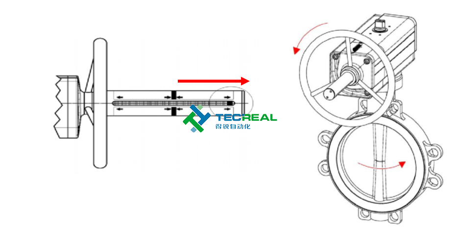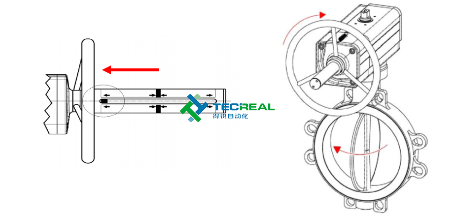 順時(shí)針旋轉(zhuǎn)手輪時(shí)關(guān)閉閥門,手輪操作必須在執(zhí)行器沒有氣源壓力時(shí)進(jìn)行