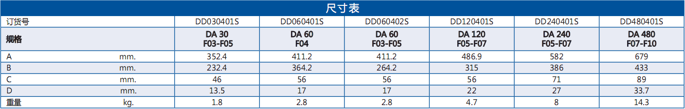 尺寸表: