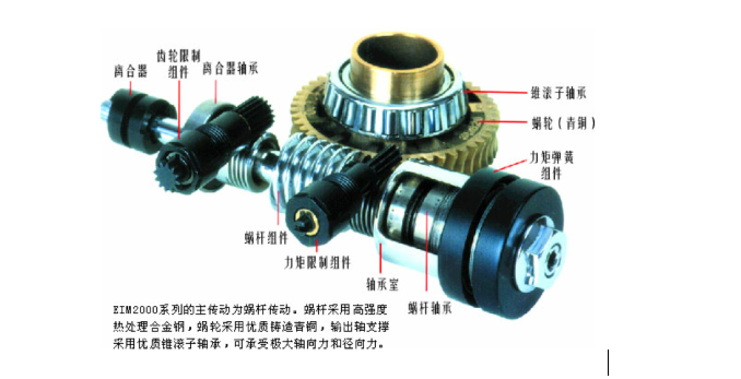 多級(jí)齒輪和蝸輪蝸桿傳動(dòng)結(jié)構(gòu),蝸桿采用高強(qiáng)度熱處理合金鋼,渦輪采用優(yōu)質(zhì)鑄造青銅,輸出軸支撐采用優(yōu)質(zhì)錐滾子軸承,可承受極大軸向力和徑向力,傳動(dòng)更加精確。