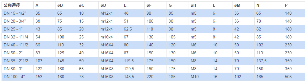 法蘭連接要求:符合EN 1092-1 PN40 至 DN50; PN16 DN65,50,100 EN 12516標(biāo)準(zhǔn)。