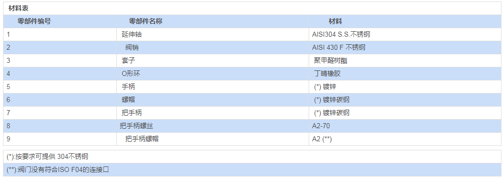 采用材料(用于閥體/活塞球/閥桿)與標(biāo)準(zhǔn)配置不同的參數(shù)要求,請(qǐng)與我們的銷售部門聯(lián)系