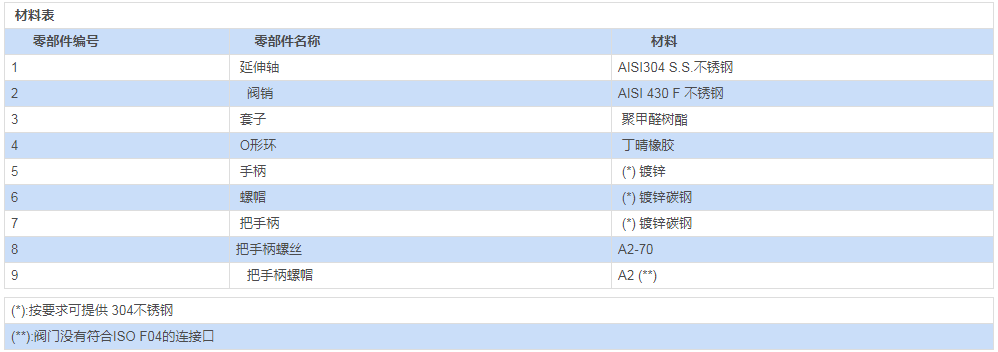 采用材料(用于閥體/活塞球/閥桿)與標(biāo)準(zhǔn)配置不同的參數(shù)要求,請(qǐng)與我們的銷售部門聯(lián)系