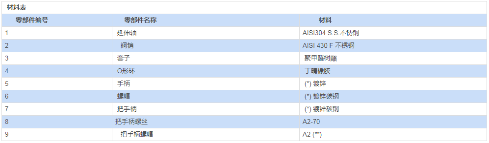 手柄、螺帽及閥桿彈簧采用不銹鋼